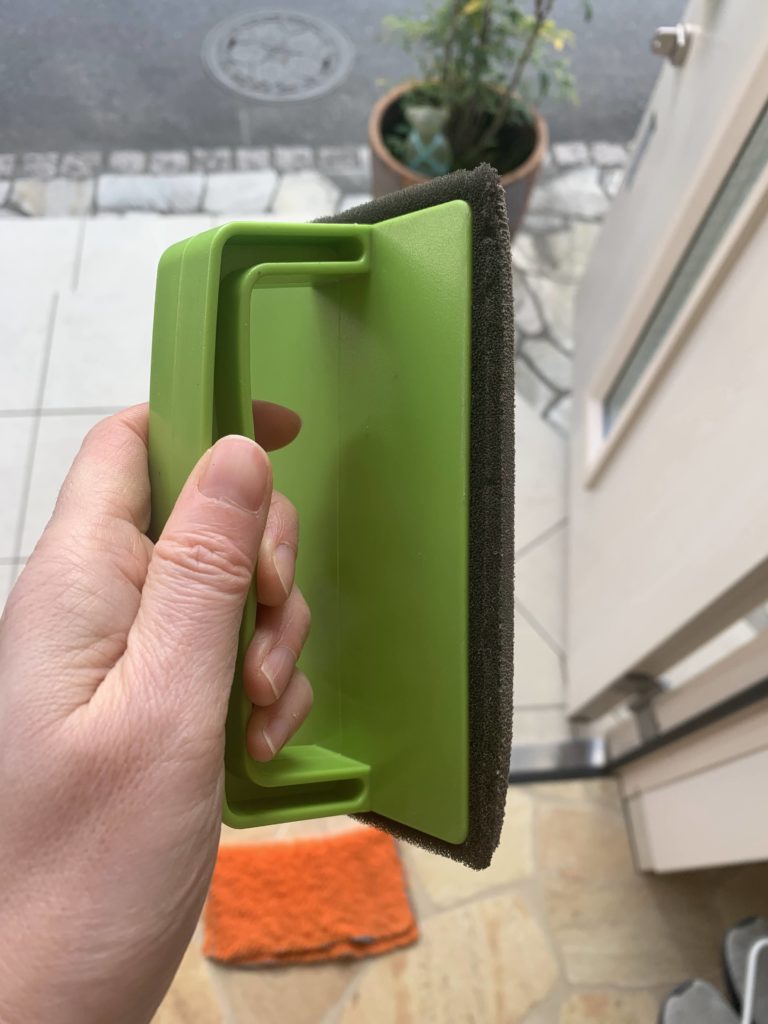 このブラッシングスポンジの良いところは、水だけで綺麗になるというところ。外の掃除って、洗剤を使うと掃除が終わった後も、洗剤が他のお家の迷惑になっていないかって気になってしまいますよね。洗剤を綺麗に流し終わるまでが、掃除した時間よりも長くなったり。。