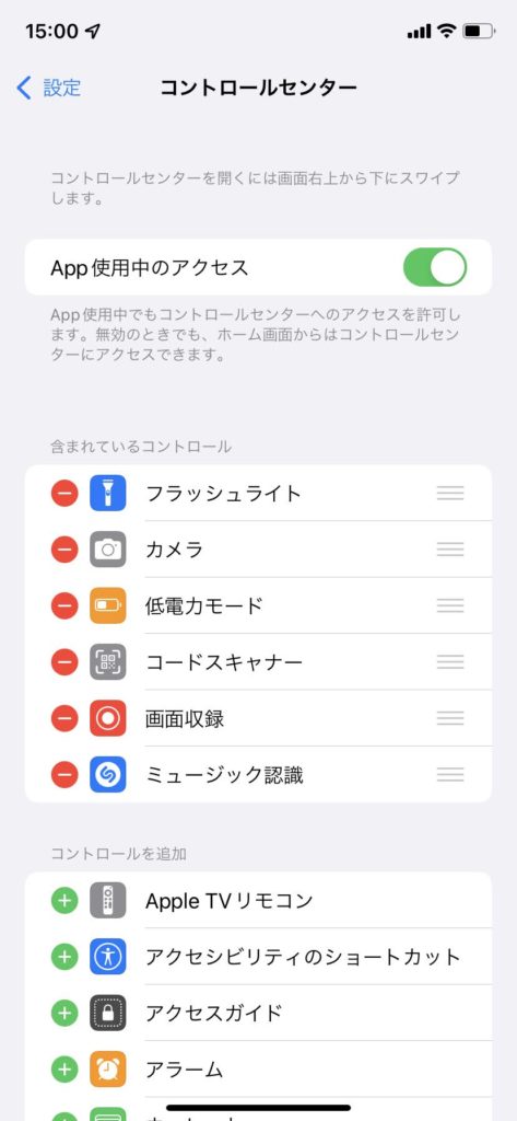 設定の仕方は、まず設定画面からコントロールセンターにいきます。