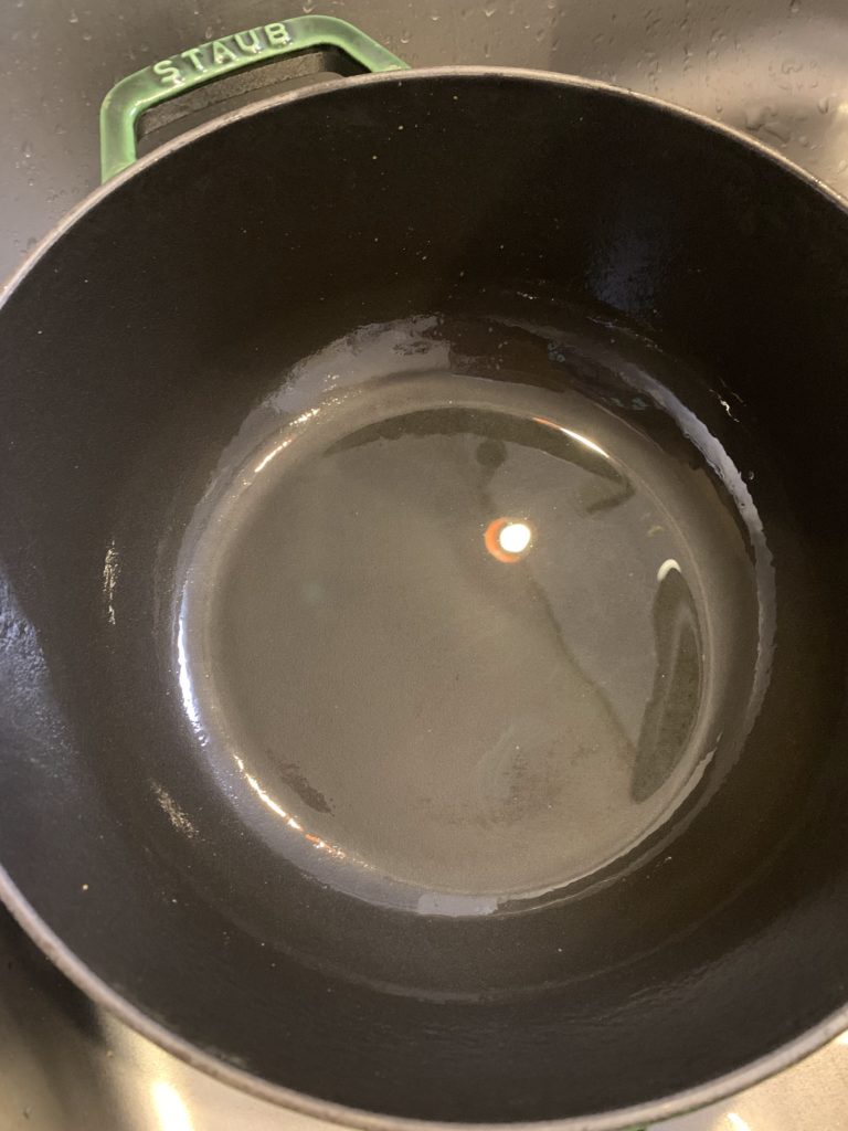 ①食べ終わったお鍋にお湯(お鍋がすでに冷たい場合はお水でも大丈夫です。お湯を入れるのはお鍋を傷めないため)をたっぷりと入れます。
