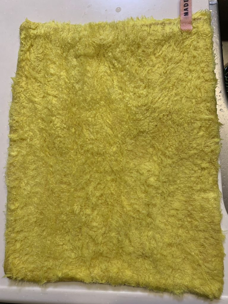 写真をよーく見るとわかるんですが、ところどころ薄くなっていて毛がない部分もあるくらい使い込んでるこのクロス。それでもまだまだ活躍してくれるし、臭くもなっていませんよ。写真を見るついでにチェックしてもらいたいんですが、毛足が長いです。濡れていないとアンゴラニットのようにフワフワしてます♪この毛足が長いのも汚れを取ってくれるのに役立ってるのかなって思います。