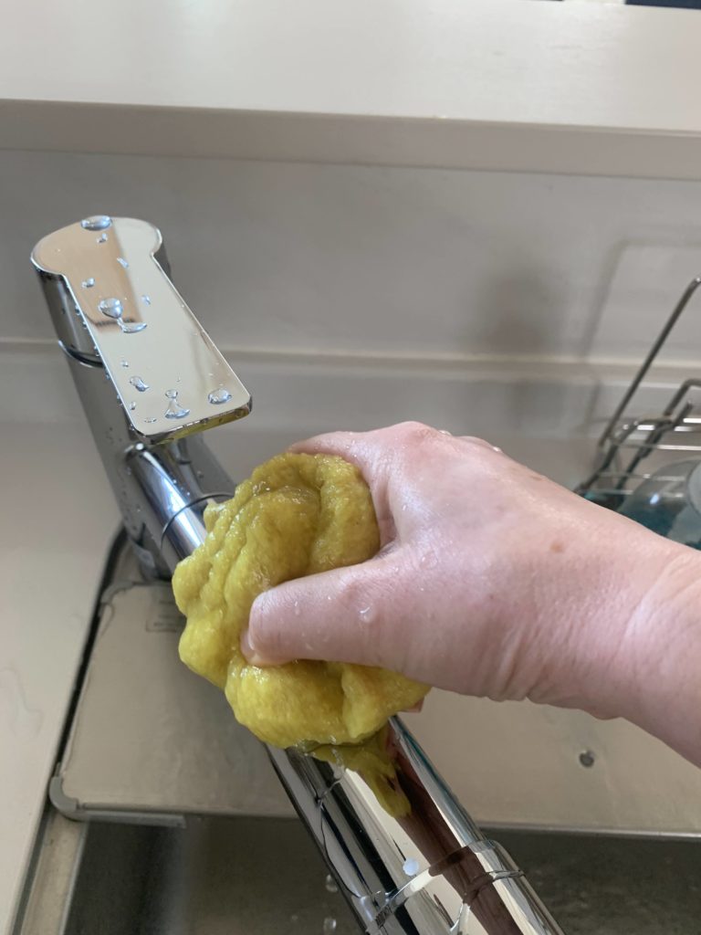 もし、水だけでは綺麗になりきらなかったり、もっと綺麗にしたいと思う方はクエン酸を最初にスプレーしてからナデナデしてあげると良いですよ。5年使っていて気づいたんですが、パルスイクロスは水を使いながらたっぷりの水と一緒に使ってあげると、汚れ落ちも良いし長持ちすると思います。